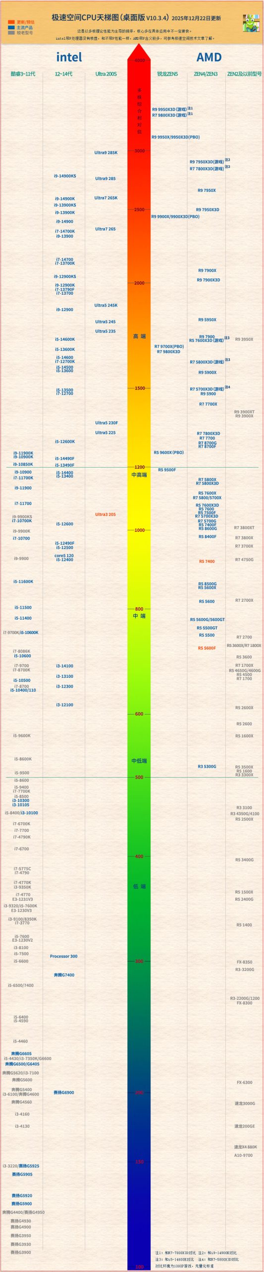 上次發過一篇2025年最新版顯示卡天梯圖,這次再來發個CPU(處理器)的天梯圖